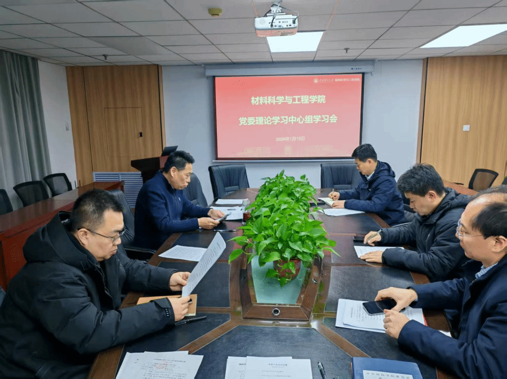 会议严格按照既定议程有序推进,中心组成员围绕一系列重要政治内容开展集中学习。游志勇书记率先领学三项重要内容:在领学国家主席习近平二〇二六年新年贺词时,他重点解读了贺词中蕴含的家国情怀与奋进力量,强调贺词回望了2025年国家发展的辉煌成就,展望了"十五五"开局的美好前景,特别提及创新创造催生新质生产力、中华文化传承发展等重要论述,为学院在材料学科创新、人才培养等方面指明了方向。随后,游志勇书记带领与会人员深入学习习近平总书记在二十届中央纪委五次全会上的重要讲话及全会公报,详细解读了全会关于2026年全面从严治党、正风肃纪反腐的部署要求,强调要深刻把握"十五五"时期全面从严治党的新形势新任务,切实把思想和行动统一到党中央决策部署上来,以高质量党建引领学院事业发展。