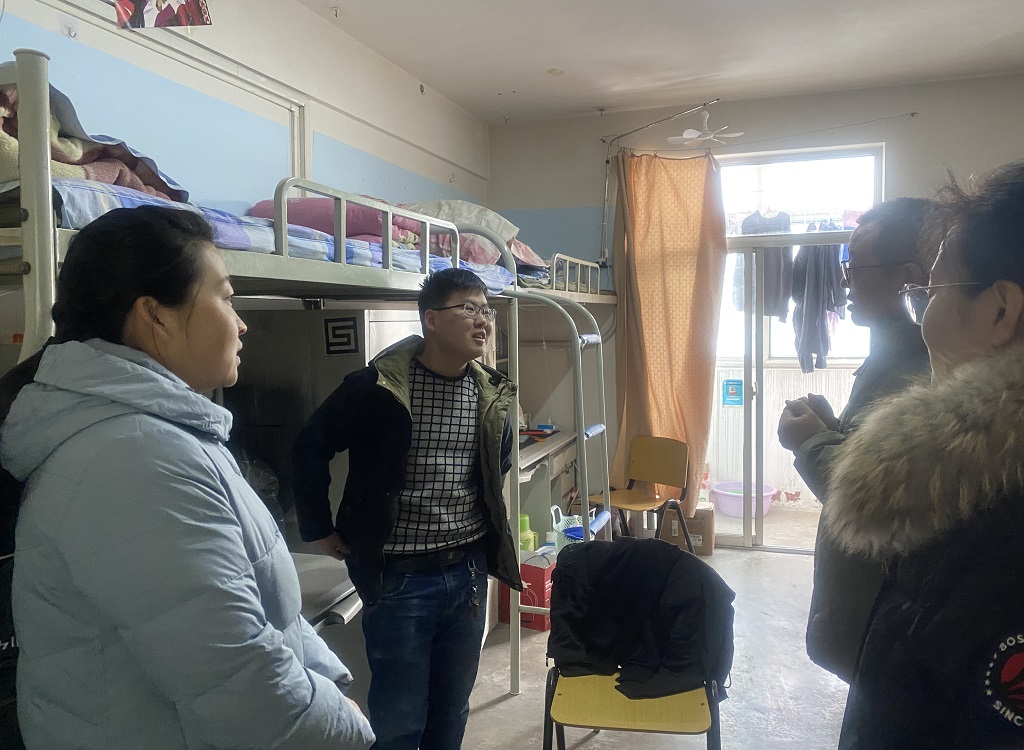 2022年1月26日上午,taptap点点官方网站党委书记张忠璞、党委副书记郑芳、学工办主任白小芳以及辅导员郭洋、路晨鹤走入学生公寓,看望慰问寒假留校学生。