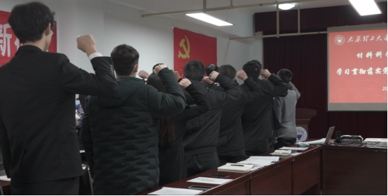 会议最后,全体参会人员面向党旗,重温了入党誓词,由许通陆领誓。