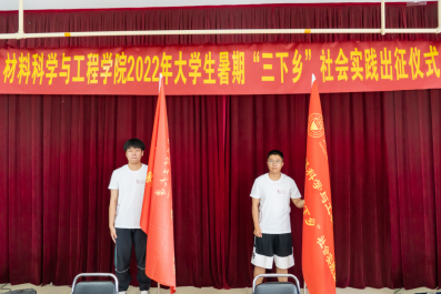 随后,张忠璞书记向此次暑期“三下乡”社会实践团队队长授旗。学生代表武轲带领实践队员进行宣誓,作出庄重承诺:秉承学院优良作风,发扬志愿精神;听从安排,遵守纪律,团结协作,吃苦耐劳;展现材料学子风采,争做当代青年标杆!
