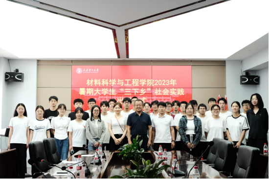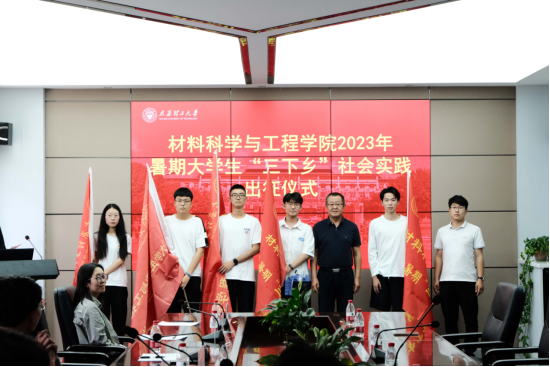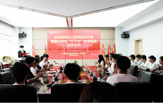 张忠璞致出征辞。他强调,同学们要利用好暑期社会实践这个机会,在社会课堂中“受教育、长才干、作贡献”,在了解国情民情中坚定信念,在艰苦环境中磨练意志品质,在社会服务中彰显人生价值,他向实践队员提出三点要求,一要在实践中践行党的二十大精神,深入领会习近平总书记在党的二十大报告中对青年的寄语。二要在实践中要练就本领、增长才干,牢牢树立为祖国为人民不懈奋斗、赤诚奉献的坚定理想,以材料力量推动社会发展。三要遵守纪律、服从指挥,牢牢守住“安全实践”底线。
