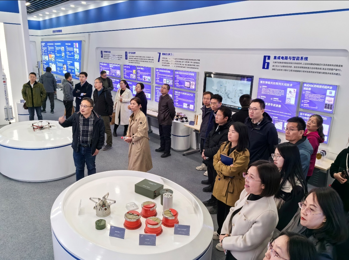 参观交流过程中,中北大学科研院蔡国轩老师对中北大学总体发展概况和每项科研成果转化现状进行了详细介绍。展览馆以“四个面向”为主线,集中展示、系统反映中北大学科技创新取得的新进展、新成就。展出的科研成果广泛应用于国家载人航天、深空探测、重大武器型号等。