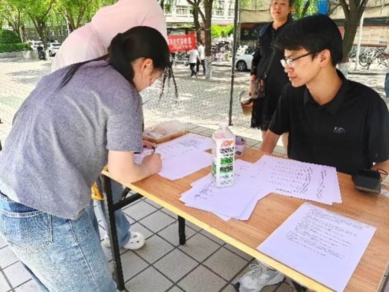 志愿者现场向同学们介绍关于节能减排大赛的相关事宜与赛事规则,引导学生将理论知识转换为节能减排的创新理念,为节能减排大赛在校内宣传起到了重要作用。