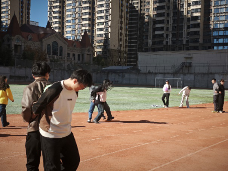 背靠背冲刺项目成为全场焦点。队员们背靠背相挽,仅凭肢体力道感知方向,从起步时的小心翼翼到中途的节奏同步,再到冲线时的齐声呐喊,完美诠释了“信任”的内涵。有人说:“闭着眼跟着搭档跑的时候,一点都不慌,因为知道他会带我跑对方向。”这份无需言说的信任,成了赛场上最珍贵的收获。