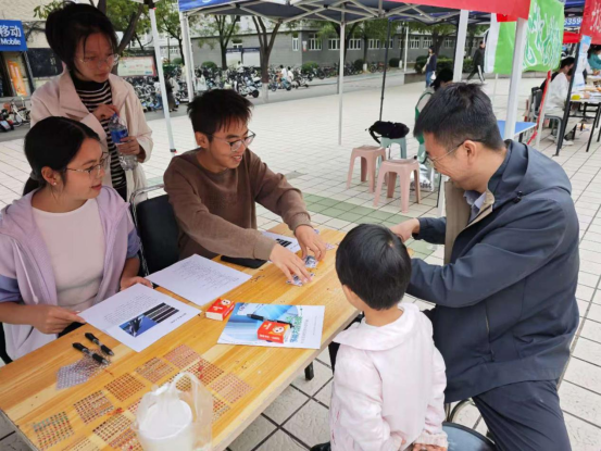 “隐身涂层主要通过什么方式实现隐身效果?”“航天合金中最常用的金属元素是什么?”在随后的国防材料有奖问答环节,志愿者抛出的问题刚落,现场便响起此起彼伏的举手声。同学们结合刚刚学到的知识,积极抢答,不仅快速锁定正确答案,还能清晰阐述背后的原理。答对的同学欣喜地接过帆布袋、小玩偶等精美奖品,未答对的同学也在志愿者的补充讲解中加深了理解。“先听讲解再答题,就像带着‘知识点’闯关,既记得牢,又特别有成就感!”一位参与答题的同学兴奋地说道。